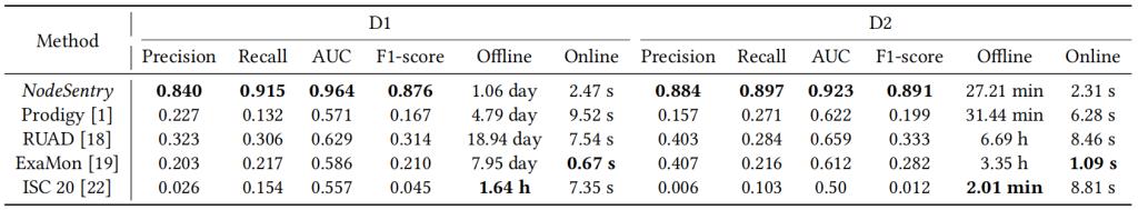 在部署方面,NodeSentry在实际的HPC生产环境中进行了部署和测试。在一个月的连续评估期间,NodeSentry展示了高效的运行性能,每个小时的监控周期的模式匹配平均完成时间为5.11秒,每个采样点的实时检测延迟为36毫秒。在识别性能异常方面,NodeSentry的精确度和召回率分别为0.857和0.923,这表明NodeSentry在实际应用中具有优秀的异常检测能力。