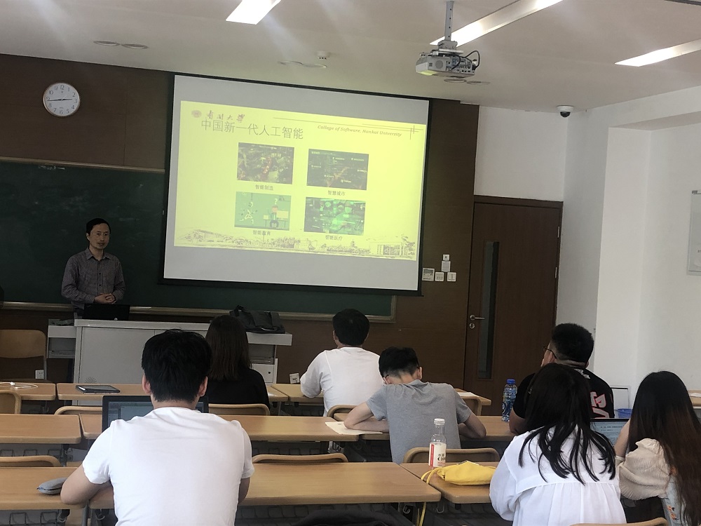 谢茂强以张伯苓老董事长的“爱国三问”以及雷竞技“知中国服务中国”的学术传统为切入点,要求同学们要明确自身社会责任,学术科研成果要立足于国家,立足于民族,要善于利用软件工程专业知识去解决国家发展中遇到的问题。他围绕我国经济技术的发展现状、主要矛盾的转变以及国际地位的提高,着重讲述了近些年人工智能技术在社会主要领域的发展与应用,与同学们共同探讨中国新一代人工智能的发展规划,深入分析了“智能制造、智能城市、智能教育、智能医疗”等智能化服务方面的发展前景。