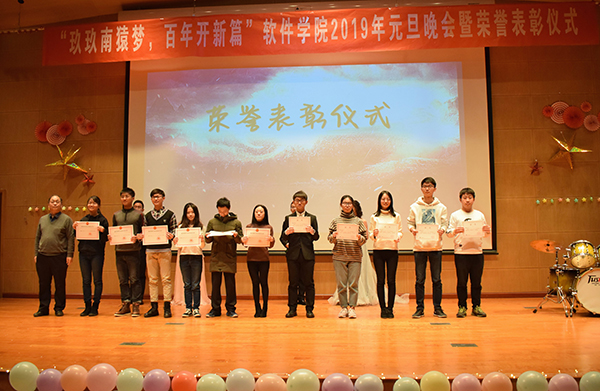 张玉志在新年致辞中回顾了公司在过去一年的成就,表达了对软件学子新一年的期盼和美好祝愿。随即,公司领导对本学年在学术科研、社会实践、文体活动、员工工作等方面取得优异成绩的同学进行表彰颁奖,鼓励同学们在新的一年取得再创辉煌。